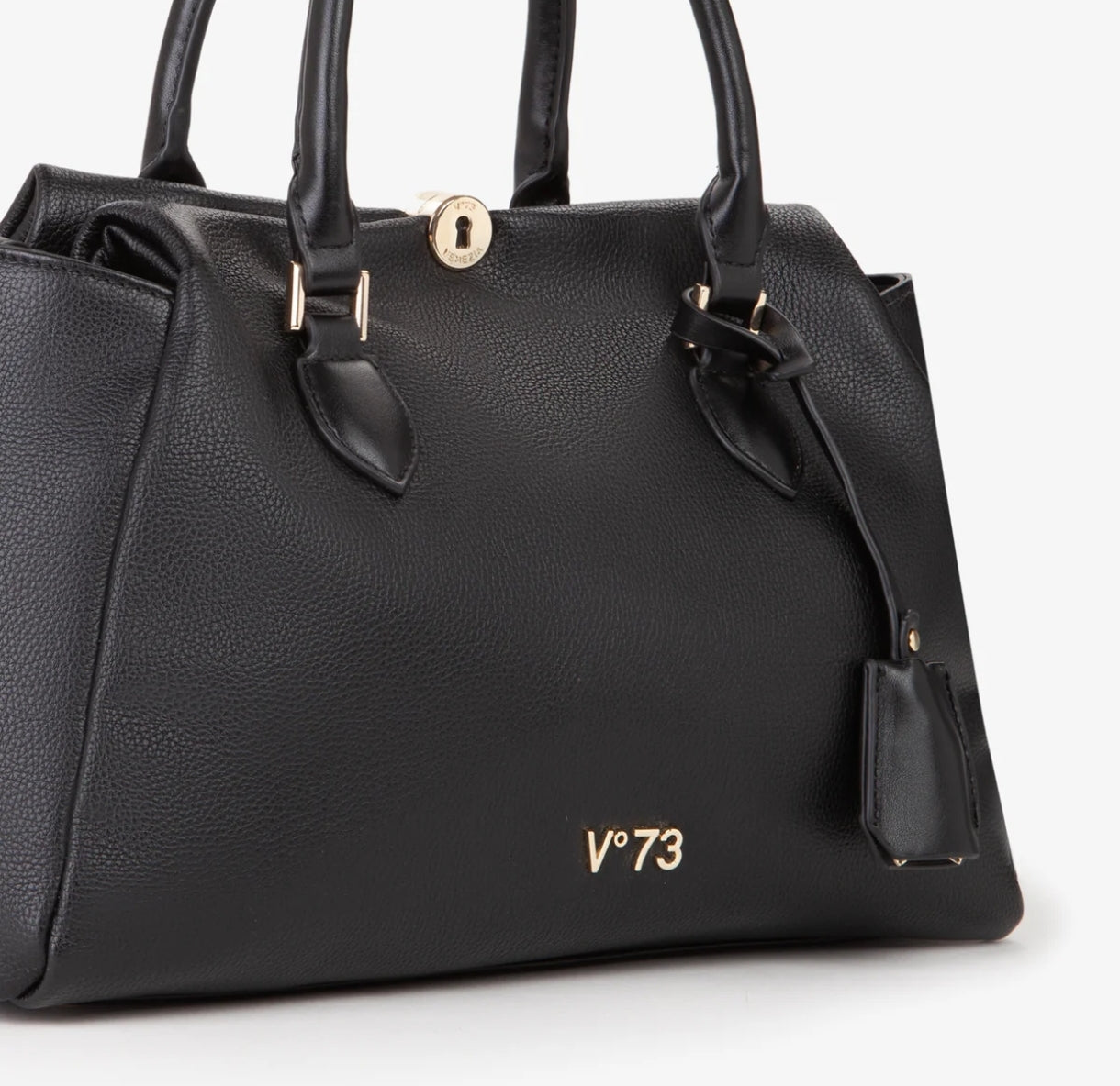 Borsa a mano realizzata in morbida nappa con chiusura magnetica effetto serratura.