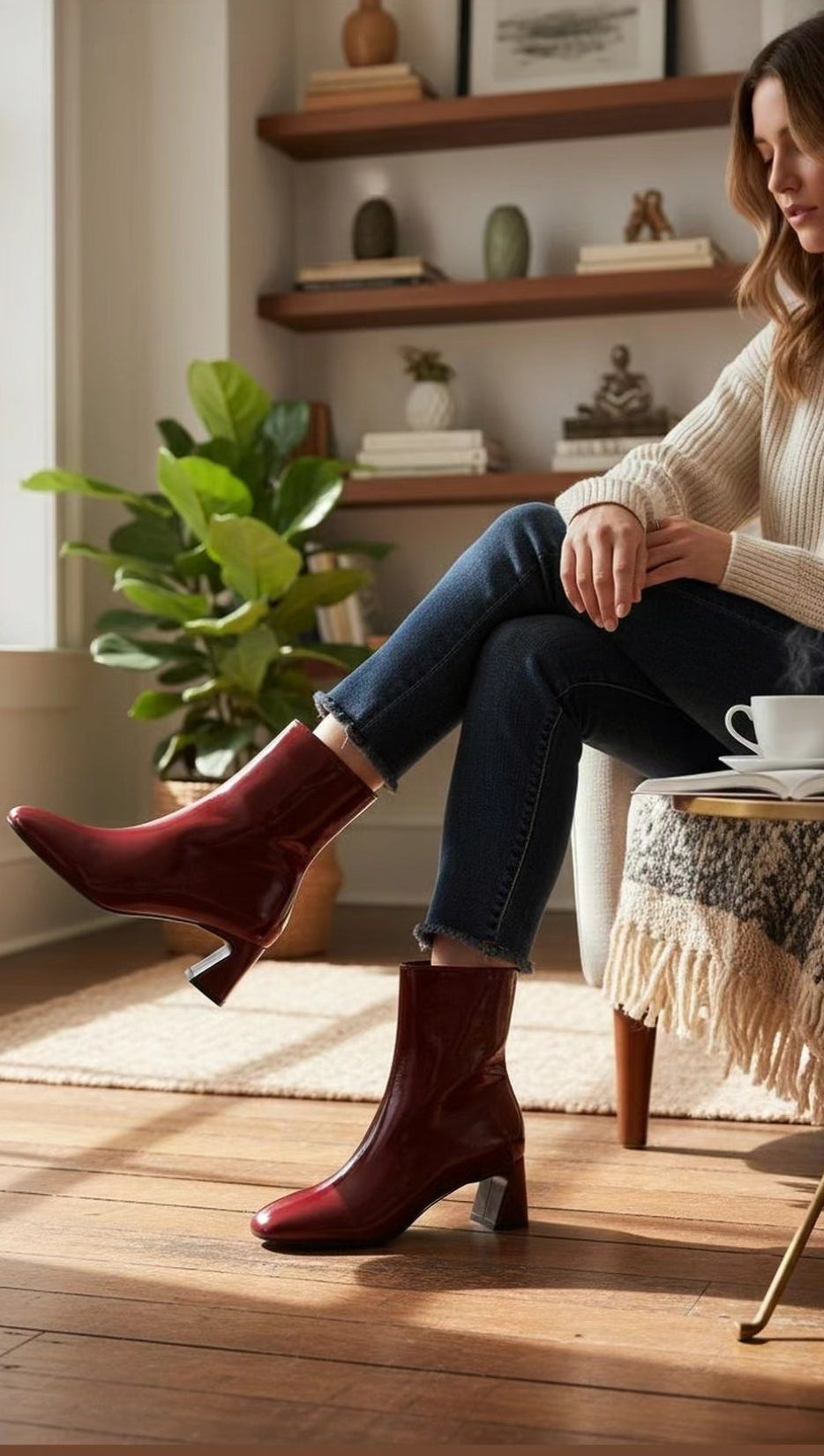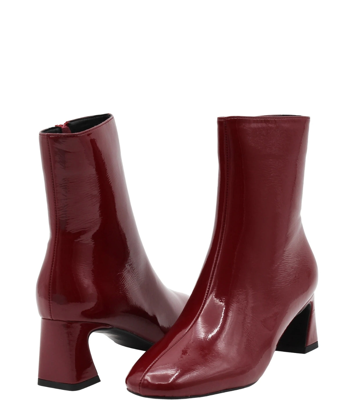 Stivaletto da donna in vernice bordeaux con tacco medio.