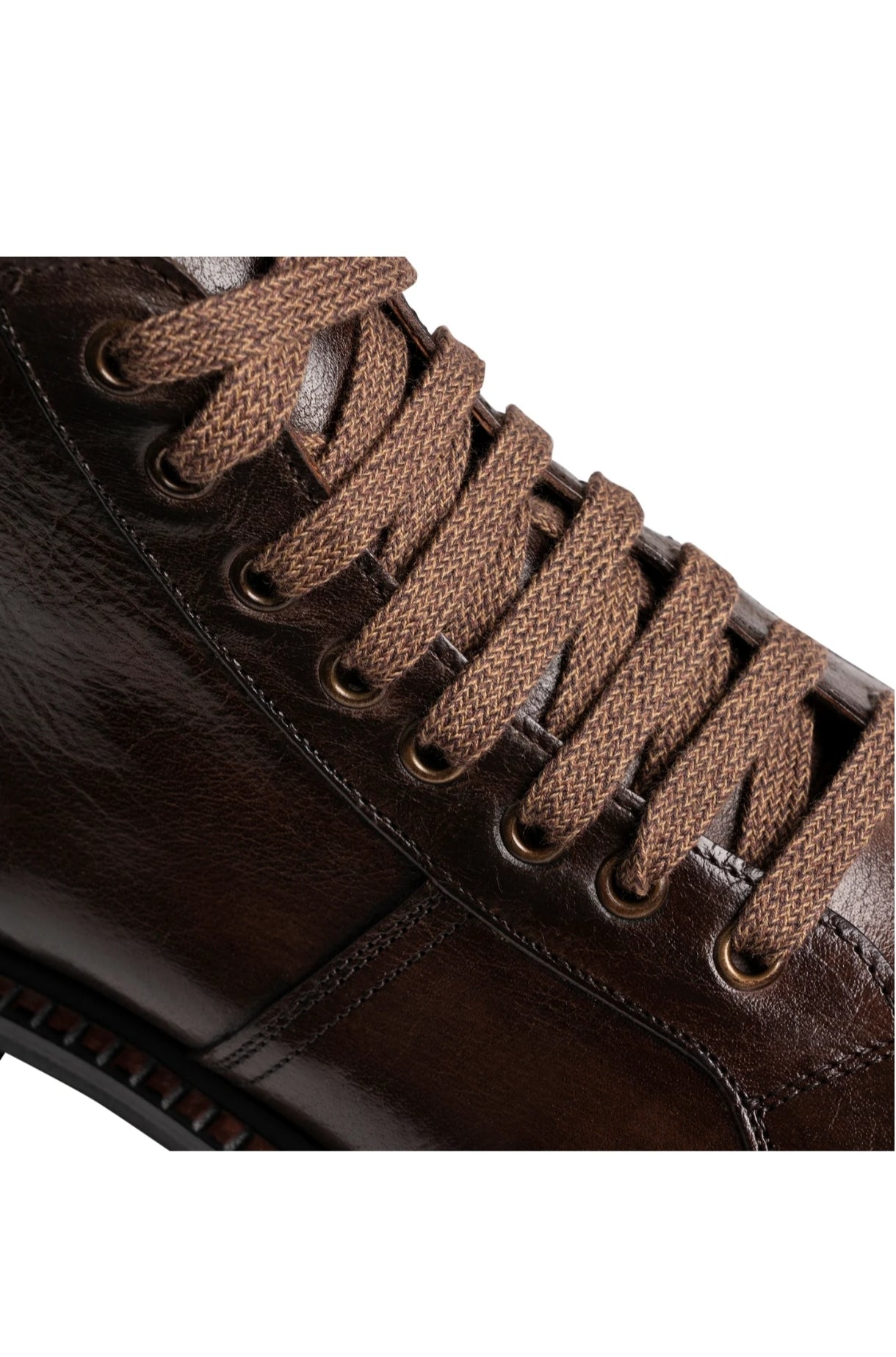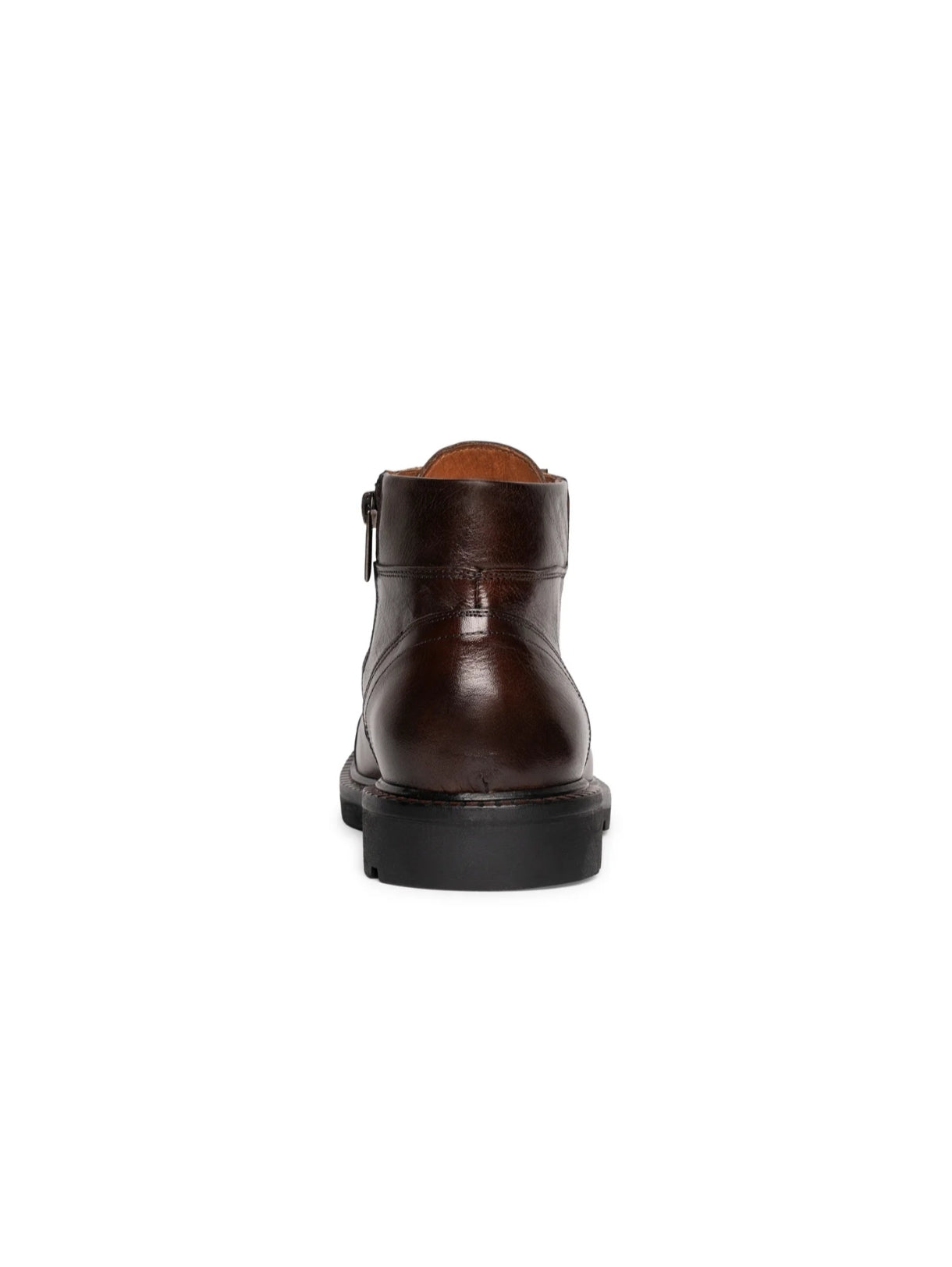 Stivaletto da uomo realizzato in vitello toscano di alta qualità, tinto nel classico colore Castagno. La pelle liscia e luminosa conferisce eleganza e versatilità, mentre la costruzione artigianale e le cuciture a vista valorizzano la cura e l’attenzione tipiche della manifattura italiana.